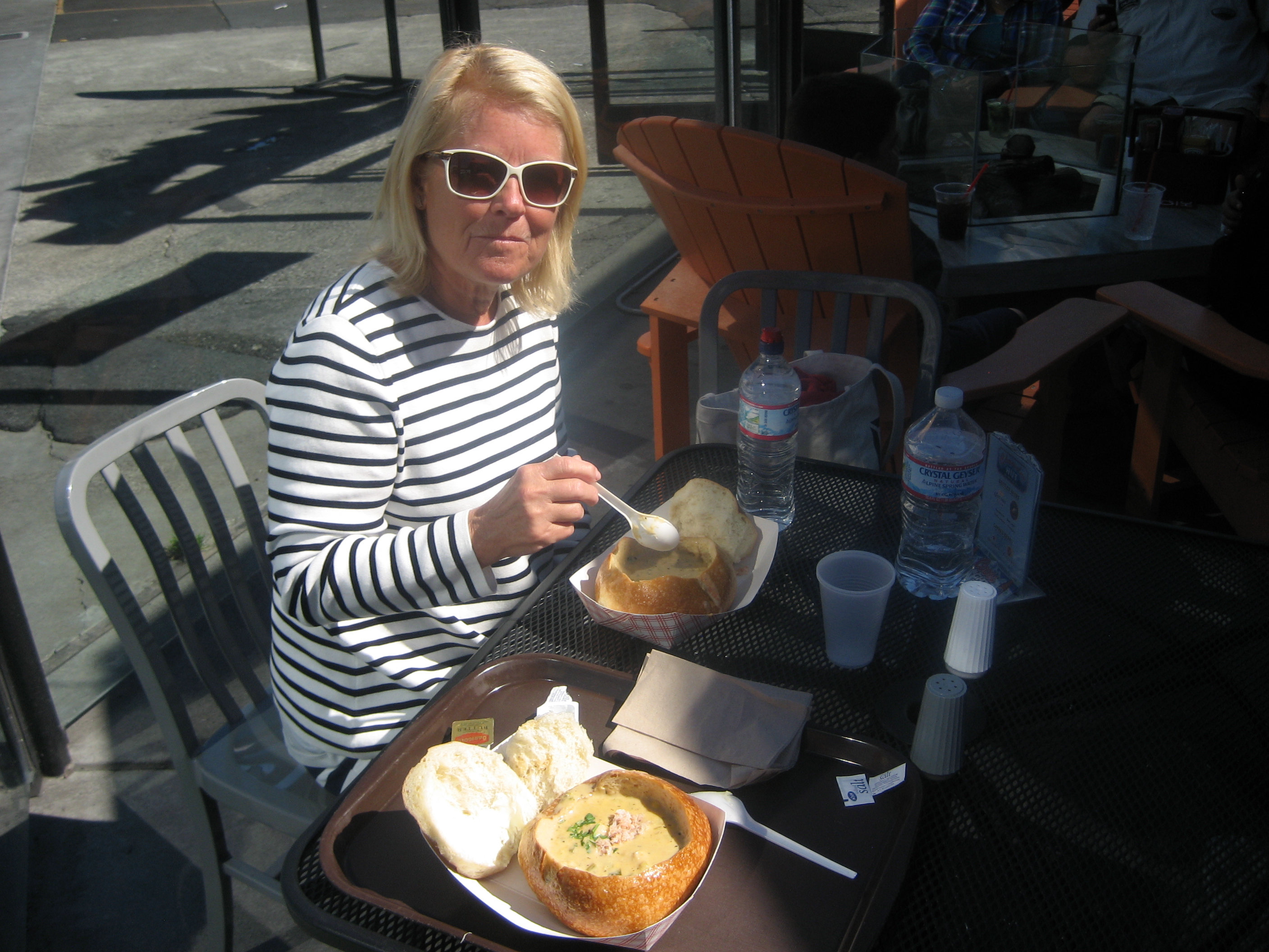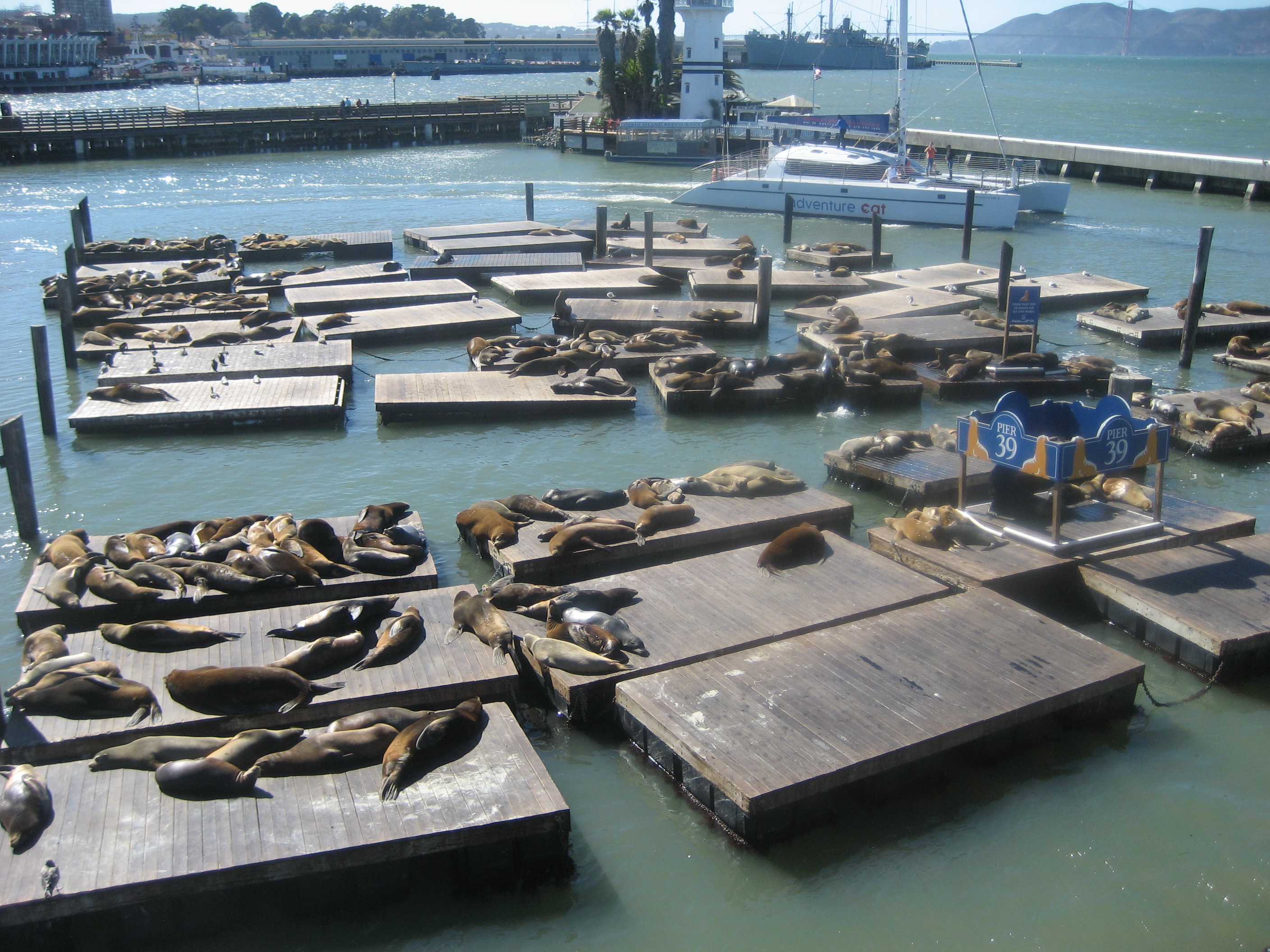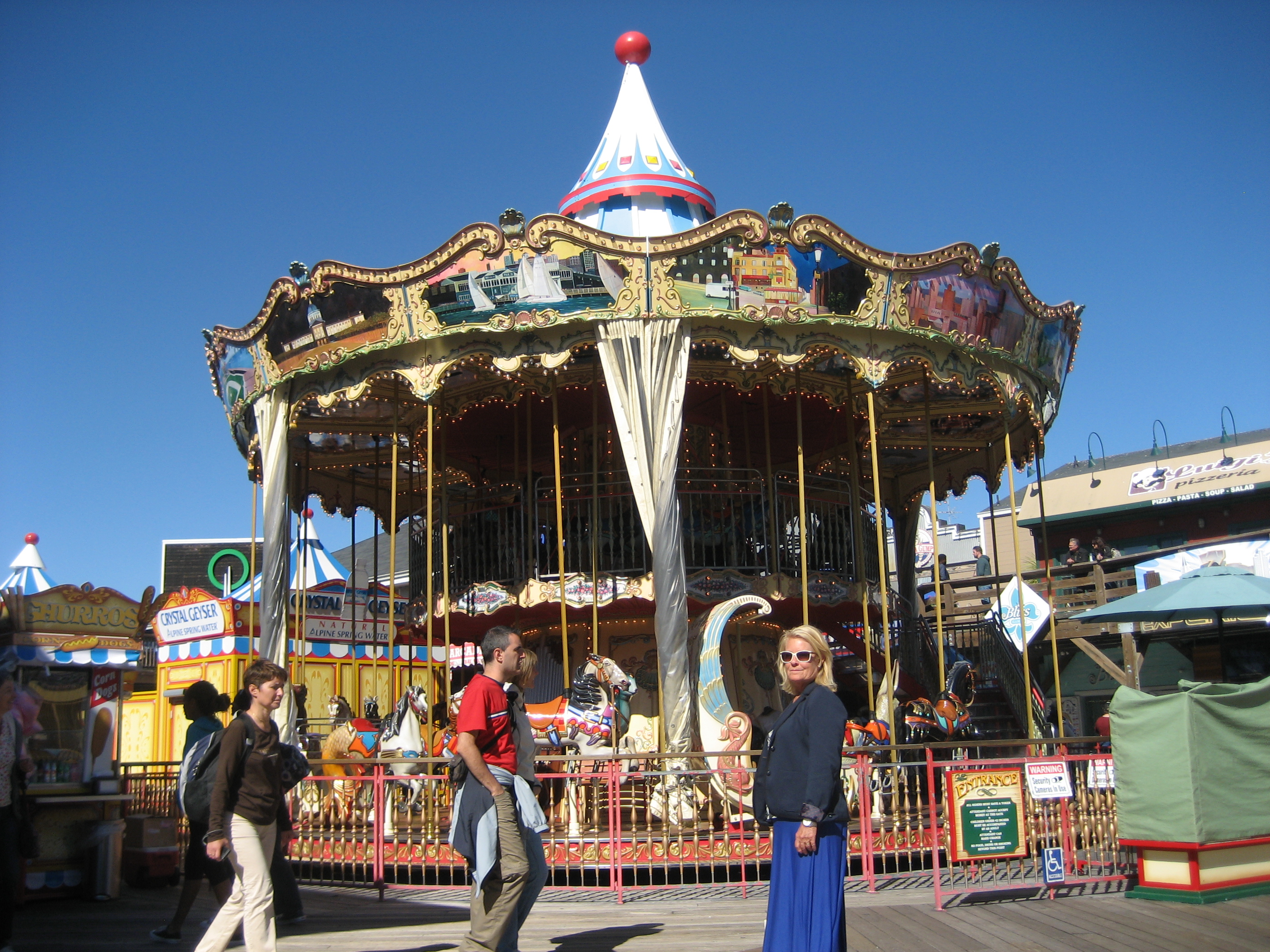 Alla fotograferade de enorma sjölejonen som låg och solbadade. Väldigt högljudda djur. De liksom brölade.Överallt på flottarna kunde man både se och höra sjölejonen. Med jämna mellanrum tog de ett dopp. De gled långsamt ner i havet och sen ålade de sig upp och fortsatte att sola.Den godaste lunchen vi åt var soppa i ett stort bröd. Varje lunch under tiden vi var i San Fran njöt vi av soppan. Man kunde välja smak, till exempel svamp eller räkor.När soppan var slut kastade vi brödet. Om inte uteliggarna åt upp det så blev det måsarnas mat.Attraktioner finns det gott om för den som vill roa sig lite barnsligt.Kvällarna avslutades alltid med en god middag som ofta bestod av något gott från havet.